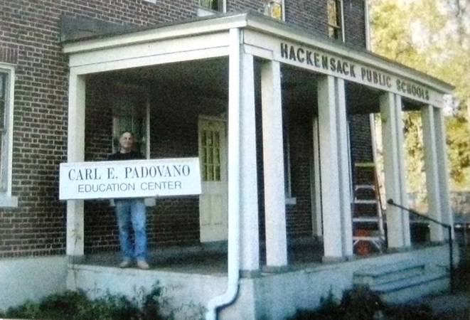 This is the original Harry B. Doremus American Legion Post 55 Building built in 1934, located on American Legion Drive (which is apparently named to honor those men who served in World War I). The Harry B. Doremus Post 55 American Legion Hall was the Carl Padovano Educational building up until the late 1970's. It is located on the street, across from Hackensack High School Gym Field and Tennis Courts. John Stalone the Hackensack Head Wrestling Coach in the spring of 2009, noticed that construction workers were ready to take down the building. He called me and said, "Bob we should save the sign or something; it just does not seem right not to save something from a building that meant so much to people years ago." Unknown to us, we went to the building the next day, and they were taking it down that moment. We took down the sign and after these photos were taken, the building you see in the photo was gone. The building was renamed the Carl Padovano Educational center in the 1970's when the American Legion sold the building to the city and that is the sign you see me holding. The building has been rebuilt and it still has his name and honors Carl Padovano and the service he gave to his country and the community of Hackensack . To those who fought in World War I, that building was their Memorial to Harry B. Doremus who lead Company G and many North Jersey young men into battle in the Great War and died while doing so. |